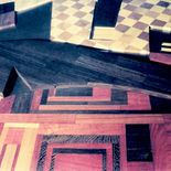 Frontale di un bancone all'interno di un disco-pub nel quale venivano tenuti concerti, atmosfera rock, e proprio dalle sonorità di questo genere e la musicalità geometrica delle opere di Kandinsji mi sono ispirato cercando di tradurle in forme e colori.